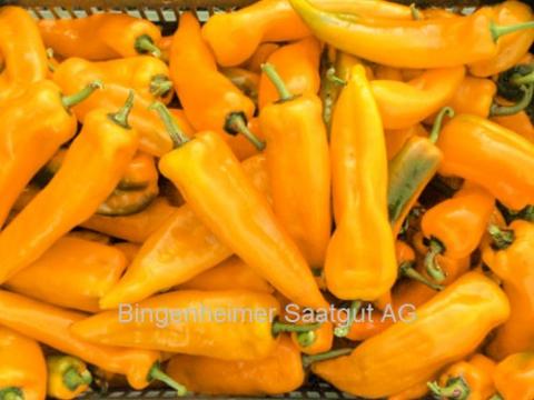 Fruchtgröße: 17-20 cm, spitz, lang, dickfleischig